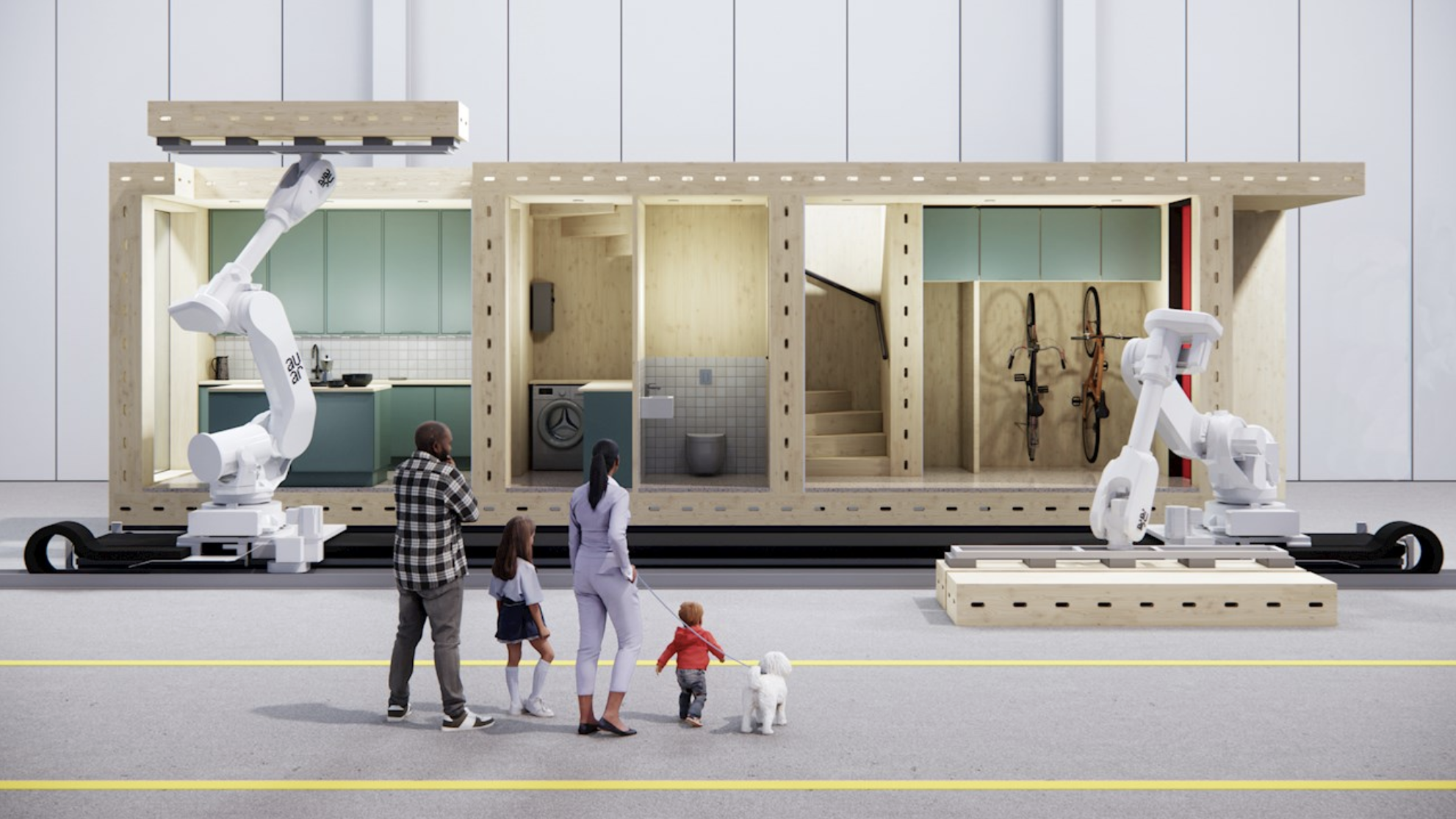 従来の住宅製造は大規模な工場か、あるいは現場での手作業という二択しかありませんでしたが、AUARはマイクロファクトリーという小型のロボティック生産ユニットを分散配置することで、この前提を覆しています。この仕組みによって各地域ごとに住宅モジュールの生産拠点を置けるようになり、長距離輸送に伴う物流コストや環境負荷を抑えたローカル生産モデルが成立します。従来のプレハブ住宅工場のように巨大設備を一括で構えるのではなく、必要な地域に小規模に展開するため、地元資材や地域の施工事業者との連携も柔軟に行えます。